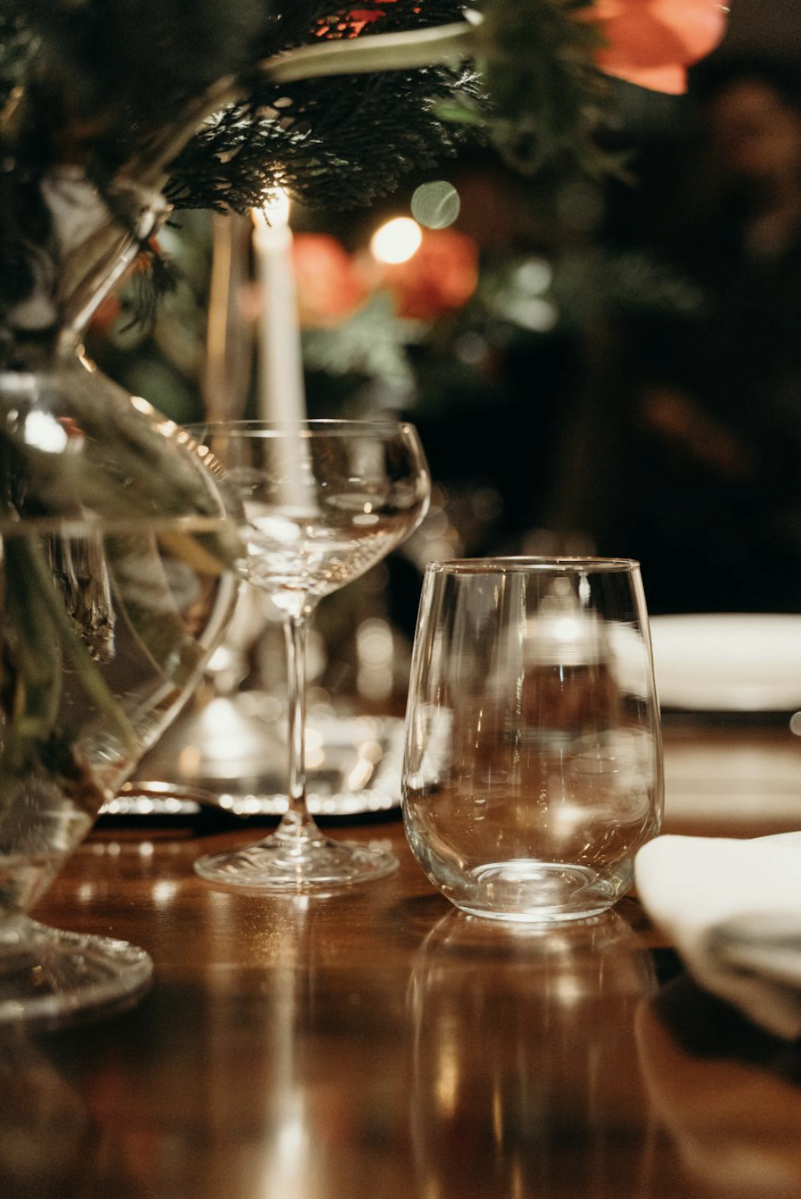 - Accented with pops of polished metallics like brass and gold, ribbons, mellow flickering candlelight, wood, pinecones, and cedar.